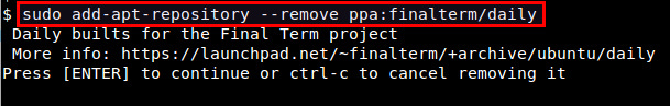 $ sudo add-apt-repository --remove ppa:finalterm/daily