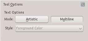 当你想在照片上添加标签或者说明这类简单文本的时候,Krita 也许会让你眼花缭乱,因为它有太多的艺术字效果可供选择了。但 Krita 同时也支持添加简单的文字。点击文本工具条,你将会看到工具选项条如图 3 那样。