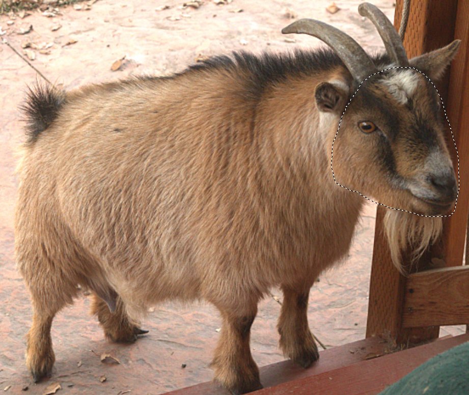 外观编辑上,Krita 有许多很棒的工具。在图 5 中我想要锐化 Annabelle 的脸和眼睛。(Annabelle 住在隔壁,但她很喜欢我的狗,在我这里呆了很长一段时间。我的狗却因为害怕她而跑了,但她却一点也不气馁。)首先通过“外形选区”工具选择一个区域。接着打开“滤镜 > 增强 > 虚边蒙板”。你可以调节三个变量:半长值、总量以及阈值。大多数图像编辑软件都有半径、总量和阀值的设置。半径是直径的一半,因此从技术上来说“半长值”是正确的,但却可能造成不必要的混乱。