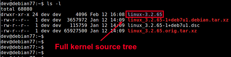 伴随着完整内核源码(linux_X.X.XX.orig.tar.xz)的还有一些可用的内核补丁(linux_X.X.X+XXX.debian.tar.xz)和源码控制文件(linux_XXXX.dsc),这些都将被下载并存储到当前目录。在.dsc文件中会指出如何给内核源码打补丁。